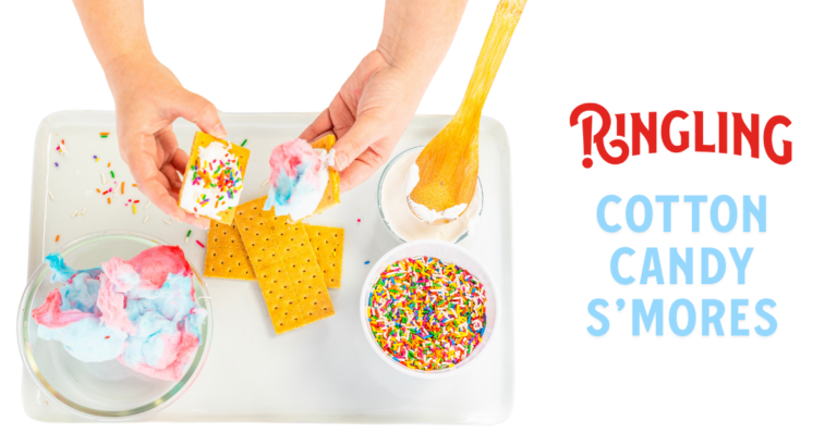 It’s always a party with Ringling Cotton Candy S’mores! This colorful, crave-worthy combo of cotton candy, marshmallow spread, sprinkles, and graham crackers is the ultimate summer treat. Sweet, simple, and circus-inspired, it’s perfect for backyard fun, movie nights, or whenever you need a little sugar. Gather the family and celebrate The Greatest Show On Earth—snack…